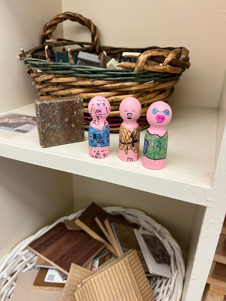 Also, adding these peg doll pigs my son painted for me in the building area with a range of different building materials turned out to be hit. Houses were built and blown down as students worked together to retell the story. I love hearing the students use new vocabulary and story structure from the original tale, all while creating their own versions of the story together. The story of The Three Little Wolves and the Big Bad Pig perfectly demonstrated how a story can be changed to create a new story.