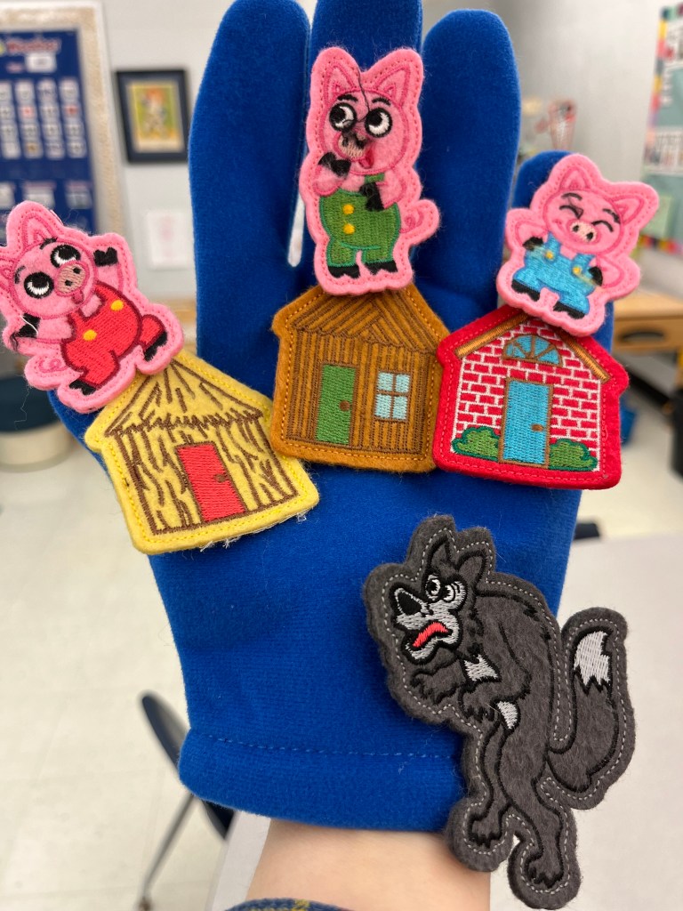 Throughout the story, the students used their big voices to help me “huff and puff” as the wolf and their tiny voices to mention the hair on their “chinny chin chins” as the pigs.